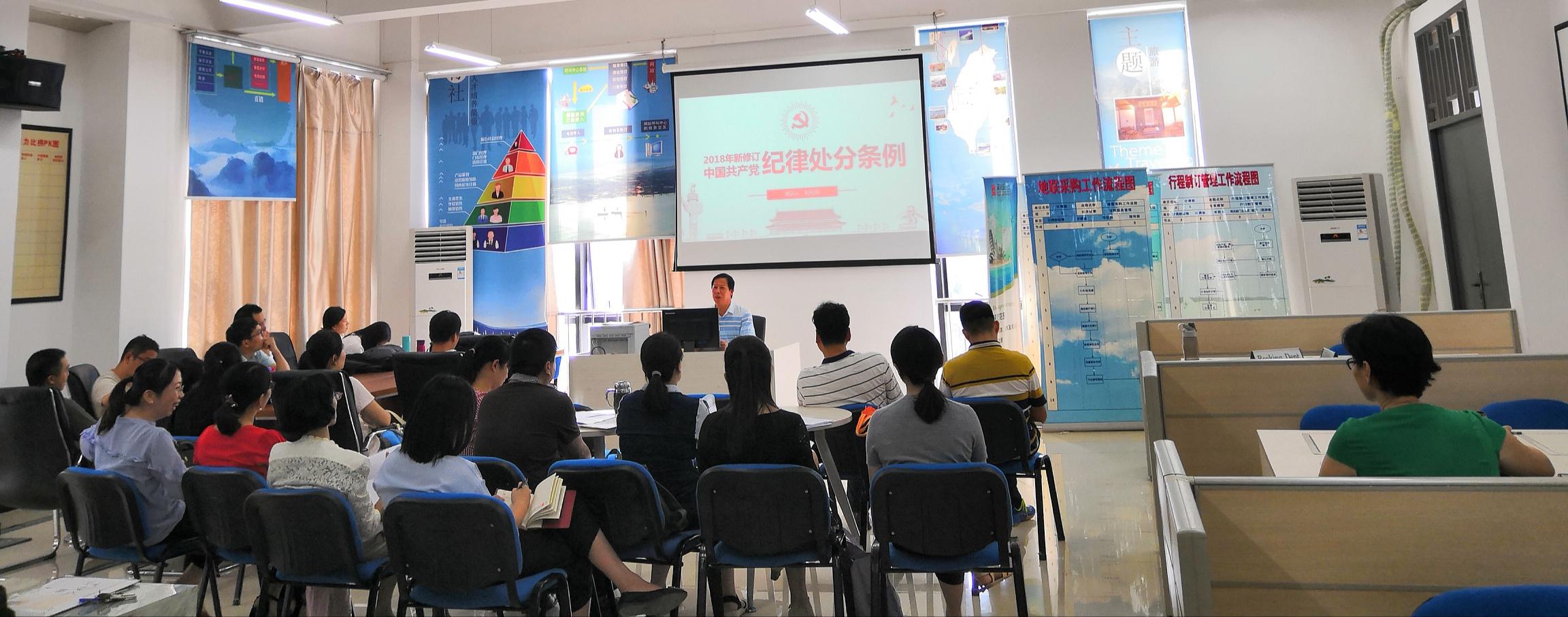 9月25日下午,我系党总支副书记刘祝明副教授主持召开全系教职工专题学习新修订的《中国共产党纪律处分条例》。会上,刘祝明同志用PPT课件为大家专题演示并讲解了《条例》产生的时代背景和全部内容。会议要求全系教职工深刻领会《条例》的重要历史意义,准确把握条例的重点和主旨;加强政治理论学习,不断提高自主学习的主动性,筑牢拒腐防变思想防线;严守“六大纪律”,自觉接受群众监督,履职担当尽责,切实做好本职工作。