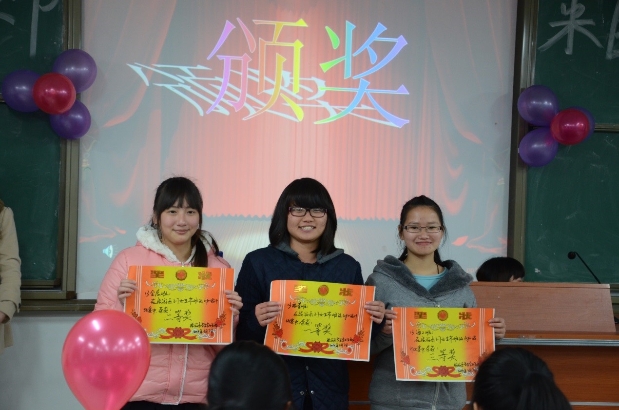 7点,会场如期举行了关爱女生,青春无限的女生节。此活动分为三个环节,第一个环节由财富班陈扬迎面向我们走来,深情款款地唱起《初次与你见面》,,激起无数女生们内心的涟漪。歌曲结束后,第二环节,是竞争激烈的班级logoPK,经激烈角逐,来自旅管班的设计最终获得第一名。在同学心情澎湃之际, “气球大爆炸”活动再次掀起全场热情。第三环节,旅管班沈雪婷唯美的演绎了《成全》。最后全场女生在便利贴写上心愿,为自己的愿望留下痕迹。一曲全场大合唱《我是女生》后,活动完美落下帷幕。