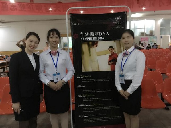 此次活动以旅游系2017届毕业生与企业的见面会为载体,共吸引了15家酒店企业和15家其他旅游类企业参会。项目组师生在前期开展大量酒店企业推荐工作的基础上,通过见面会现场的志愿者服务以及现场与企业和员工之间的交流等环节,项目组向到场企业和师生们展示了万名旅游英才计划的志愿服务精神。