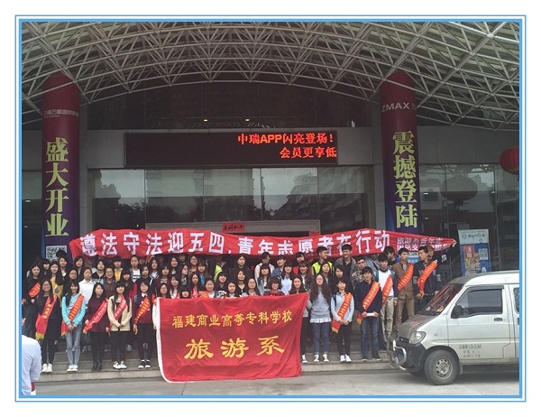 为丰富广老员工的课余生活,促进学子德智体美劳全面发展,2015年4月21日我系第二党支部、团总支组织青年志愿者及2014级旅游管理(休闲管理)专业部分员工驱车前往福州中瑞万星影城开展“尊法守法迎五四 青年志愿者在行动”社会实践活动。旅游管理专业柯云芜老师、第二党支部党员左玲霞老师、官守明老师带领员工预备党员共同参加本次活动。