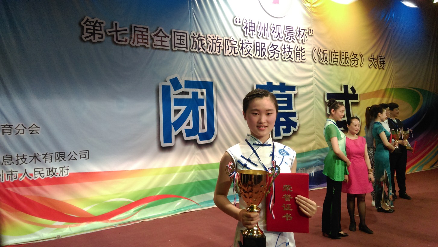 2015年5月5日至8日,“神州视景杯”第七届全国旅游院校服务技能(饭店服务)大赛在河南郑州举行,我系13级酒店管理1班何万金同学(指导老师:张潇)荣获高校组中餐宴会摆台项目一等奖。
