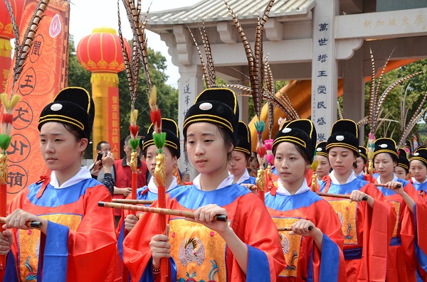 当日6:30分,旅游系青年志愿者身着汉服聚集于校青春广场候车出发,8点到达目的地。两岸各地王氏宗亲代表及各界人士齐聚闽王纪念广场,以传统的礼仪共同祭祀“开闽三圣王”(王潮、王审邽、王审知)。典礼开始之前,志愿者轮流在纪念广场的观礼席上手举地方代表牌名,引导各位贵宾顺利找到位置并入席。海峡两岸代表在闽王纪念广场前为“开闽三圣王”金身揭幕。开幕式上,司仪诵读“开闽三圣王”史迹,宣读来自台湾知名人士闽王后裔王金平先生的贺函。祭祀大典在钟鼓齐鸣声中依程序顺利进行。