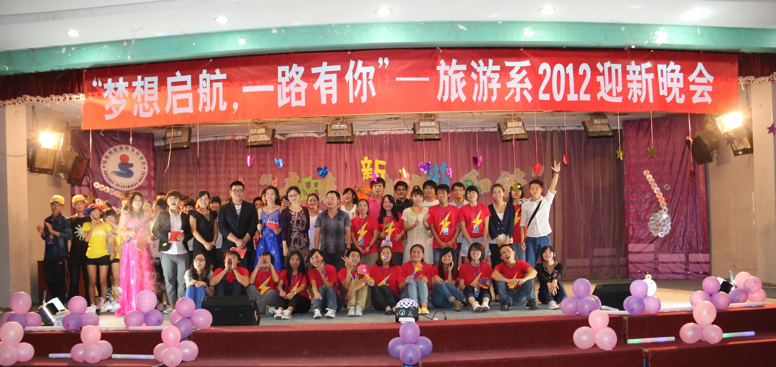 迎新晚会在校员工活动中心举行。系主任、党总支书记、及全体师生参加了此次晚会。晚会由系两委员工主持。