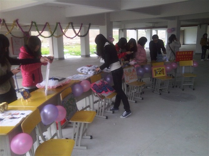 伴随着一段洋溢着青春活力的《shero》开场舞,活动正式开始。首先,各班女生代表上台展示DIY作品,并讲解作品的设计意义。参展的作品件件精致,特别是利用废弃物的回收设计出来的作品更是体现出了绿色环保文化;接下来的男女互动环节与游戏,加强了男生女生间的沟通。活动在一片融洽和快乐的欢呼声中,圆满结束。
