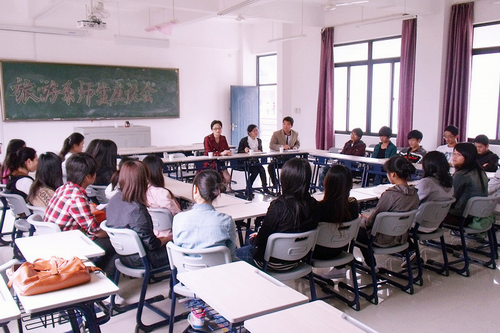 4月16日下午,旅游系在潘渡校区教学楼401教室组织召开了期中师生座谈会。系主任王瑜教授带领相关专业老师、党总支及支部委员到会, 2011级各专业员工代表参加了本次座谈会。