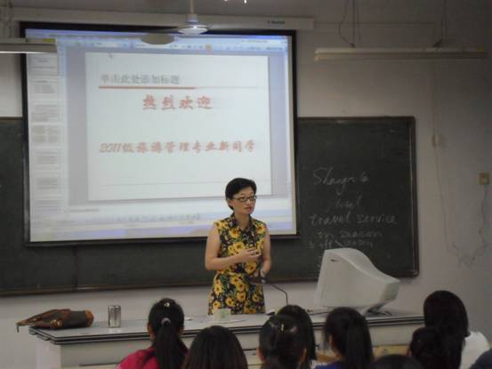 05级酒店班学长孙晓强、06级会展班学姐林小菁和07级旅游学姐唐丽华,以他们自身的学习经验激励新生调整好心态,要热爱自己的专业,制定好学习计划,学精学透,闯出属于自己的一片蓝天。 最后,各位老师针对不同的专业分别召开专业介绍会,消除新生对本专业的迷茫,不断增强新生的专业意识,激发大家对自己专业的兴趣。