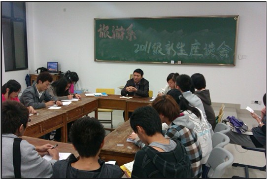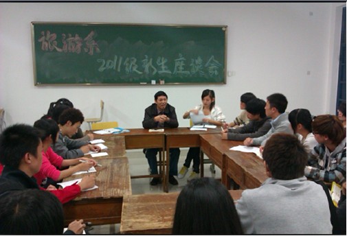 座谈会上,陈书记肯定了旅游系2011级各专业员工入学以来良好的精神面貌;针对新校区基础设施还不完善的状况,要求各班利用课余时间组织开展健康积极向上的文体活动,劳逸结合,从而活跃班级氛围,增加凝聚力;特别要重视安全问题,自觉遵守学校各项规章制度,要保证渠道畅通,发现不安全苗头要及时制止并及时向辅导员汇报。会上,老师们认真听取了与会同学的意见,深入了解员工在学习上,生活上遇到的问题,并鼓励同学们开动脑筋,多思考学习问题,培养自己吃苦耐劳的精神,努力克服校区目前存在的各种困难。
