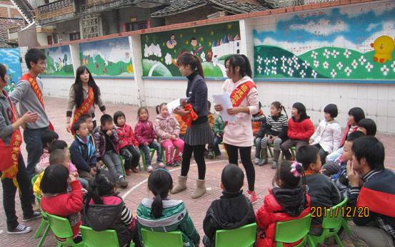 我系志愿者们在潘渡幼儿园的园长、老师的支持帮助下,热心服务,微笑服务,快乐服务,为孩子们唱歌、讲故事,还走进小朋友们的心灵世界,与他们进行心与心的交流,了解他们的心声。青年志愿者表示,通过牵手、助教与引导,以帮助孩子们树立正确的世界观、人生观、价值观。