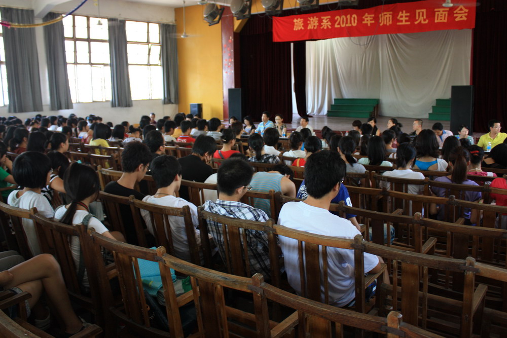 9月5日下午,我系在首山校区大礼堂举行2010年师生见面会。系党政领导及全体老师参加了新生见面会。会议邀请了企业老总、校优秀兼职教师郑宪、往届优秀毕业生李真珠和陈军军,他们介绍各自在旅游行业工作及在大学期间的学习、生活体会。