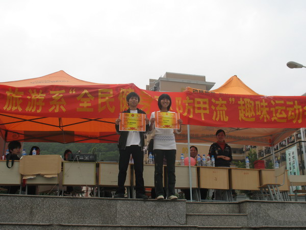 今年的“甲流”突如其来,运动健身成为人们抵御“甲流”不可或缺的元素。11月28日,我系在校内举办了首届主题为“全民健身,预防甲流”的趣味运动会。本届运动会项目多样,包括定点投篮、踢毽子、个人乒乓球赛、集体跳绳、三人男子篮球赛、托盘跑步接力、单人呼啦圈和拔河等八项。