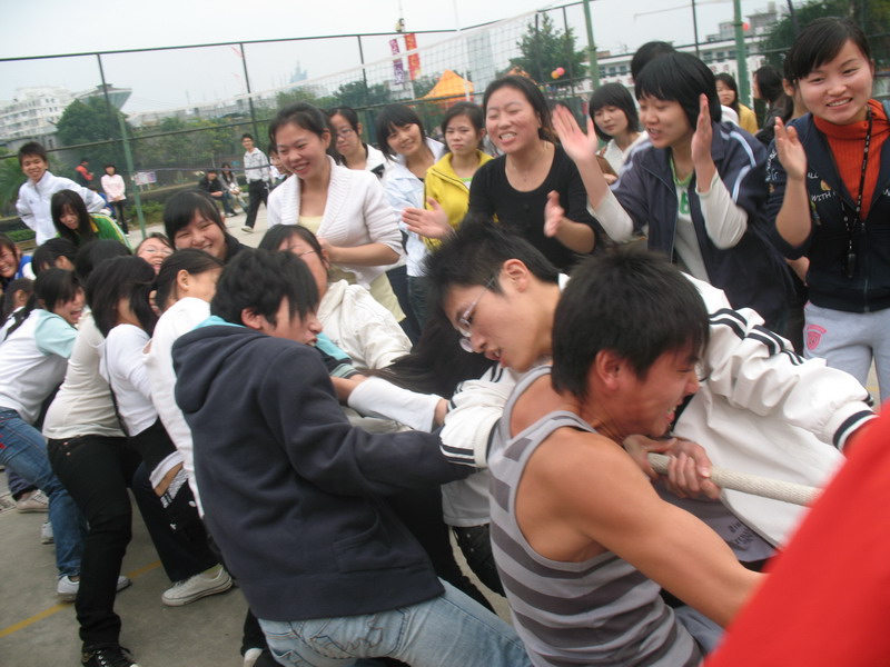 上午九点,在举行简单的运动会开幕式过后,比赛正式开始。格外引人注目的是具有本系专业特色的托盘跑步接力赛和拔河比赛,比赛进行的异常激烈。在托盘跑步接力项目中,08酒管代表队以娴熟的托盘技能、协调的步伐及默契的配合获得冠军, 08旅管、09酒(1)代表队分获二、三名。在拔河比赛中, 09酒(2)代表队获得第一名,08旅管、09酒(1)代表队分获二、三名。结果总积分第一名由09酒(2)班获得,08酒管班、08旅管班分获二、三名。在入场式评比中,08旅管班方阵以特色表现形式和整齐步伐获得“最佳方阵”的团体荣誉,“最佳精神面貌”奖由09酒(2)班方阵夺得。 在同学的喝彩与音乐声中,本届运动会顺利落下帷幕。
