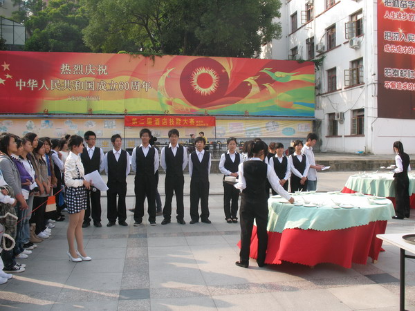 为了巩固学习成果,提高专业技能,旅游系酒店协会于12月3日在校喷泉广场举办 “第二届酒店技能大赛”。旅游系王主任、党总支陈书记、教务处刘副处长和酒店管理专业教师出席开幕式。本届参赛选手主要对象是08、09级酒店管理专业员工。她们是通过预赛选拔,进入今天决赛的。本次比赛项目有摆台、餐巾折花、斟酒和托盘接力。