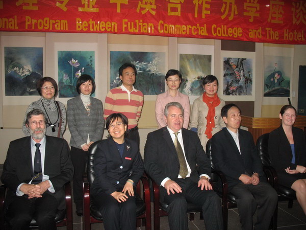 2009年11月26日,澳大利亚南十字星大学悉尼酒店学院经理Mr.Petter一行来公司访问。访问期间,举行了中澳合作办学说明会,并就双方合作的主要细节进行了深入的探讨。福建省福光基金会副理事长林公逵教授、福建商专吴贵明副董事长、旅游系王瑜主任等相关人员出席了会议。