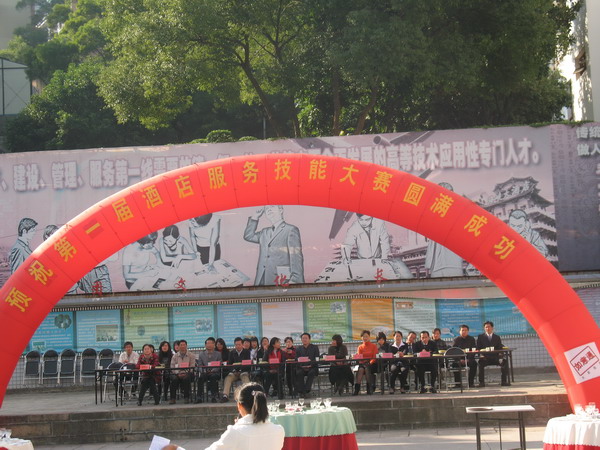 12月2日下午,旅游系在校喷泉广场举办决赛和闭幕式,出席大赛决赛的嘉宾有校吴贵明副董事长、黄跃舟副书记、教务处陈增明处长、员工处张信容处长、产学办陈世清主任等,大赛还邀请最佳西方酒店餐饮部两位主管和系酒店管理教研室的老师担任评委。