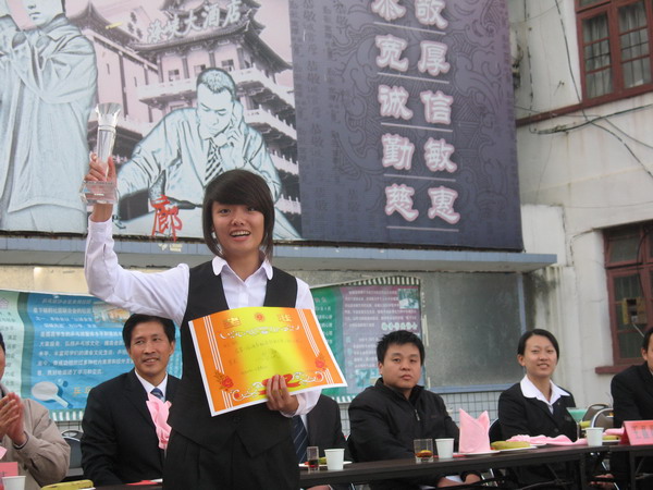 决赛历时两个半小时, 共决出个人项:溜冰传菜一、二、三等奖共六名,其中07酒管罗兴慧同学获得一等奖;中餐摆台一、二、三等奖共六名,其中08旅管(五年专)张文同学获得一等奖;团体项:按快走接力传菜和跑步传菜接力两项总分计,决出一、二、三等奖六个队。其中08酒管队获得一等奖。