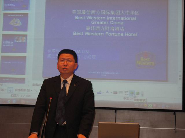 首场,由福州最佳西方财富酒店总经理、系专业建设指导委员会成员林军华先生作题为“酒店业的新挑战”的讲座。林总首先阐释酒店品牌的战略思想及介绍了国际品牌酒店在福州的分布与发展情况,同时指出,今后酒店业应朝着信息化、高科技化,专业、科技分工化的方向发展,在服务与管理过程中要追求人性化、个性化理念,最后希望在座同学面对激烈的竞争与新的挑战,能够快乐学习,全面完善自己的知识体系,实现专业水平精细化和特长化,脚踏实地提高自己的综合素质。