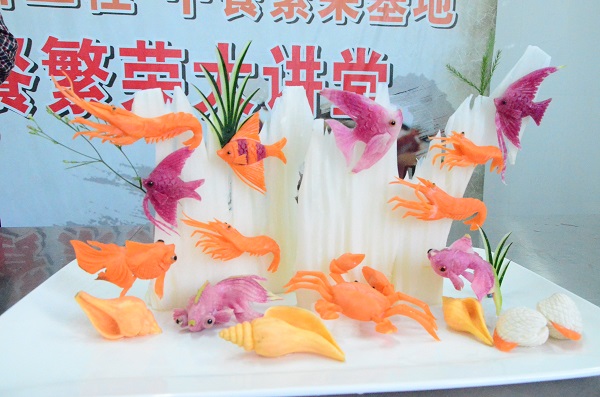 陈松俤大师结合自己的亲身阅历,给员工讲解及分析了食品雕刻艺术的发展历史、现状及前景,同时将自己丰富的从业经历分享给员工们,并为员工们详细演示了食品雕刻的技巧与手法,将一组精美的“海底世界”作品呈献给了员工们,让员工们感受到食品雕刻的博大精深和中国烹饪的艺术魅力,在座师生聆听讲座后受益匪浅。
