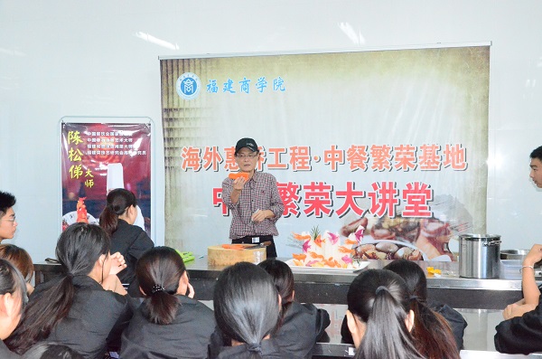 2018年10月26日下午我系邀请了福建菜技艺研究会高级研究员、中国著名食雕艺术大师、中国餐饮业国家级评委、福建省资深级闽菜大师陈松俤来校开展“食品雕刻艺术与技艺展示”讲座,烹调工艺与营养专业师生聆听了此次讲座。