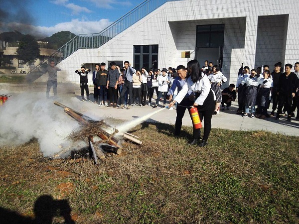 为了进一步提高广大师生的消防安全意识和自防自救能力,我系特地邀请校保卫处老师们开展了“全员消防,安全你我”消防演练活动,活动于11月28日下午2:00在连江校区琴楼与明德楼中间空地举行,烹调工艺与营养专业全体教生参与了本次活动。