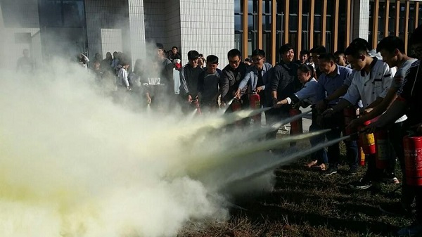 活动开始后,保卫处殷剑敏等老师首先讲解了消防器材的规范使用方法,然后伴随着工作人员将木料点燃,还演示了火灾发生后的规范灭火程序。讲解结束后,现场师生也纷纷踊跃参与灭火的实际操作。