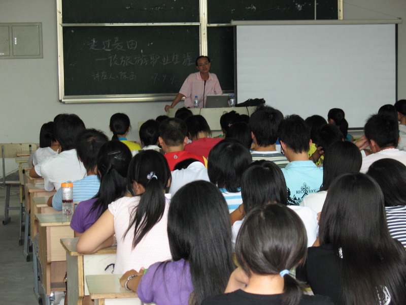 为了让2007级新生尽快树立专业思想,做好职业生涯规划,旅游系于2007年9月11日下午在校内请陈函老师作题为:“走过麦田----旅游职业生涯规划”讲座。陈函老师的讲座精彩生动,博得新生阵阵掌声。